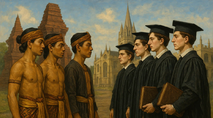 Di barat, cahaya itu berasal dari ruang-ruang batu Oxford, di mana para penuntut ilmu duduk bersila, pena mereka ibarat anak panah yang mengoyak gelapnya kebodohan.