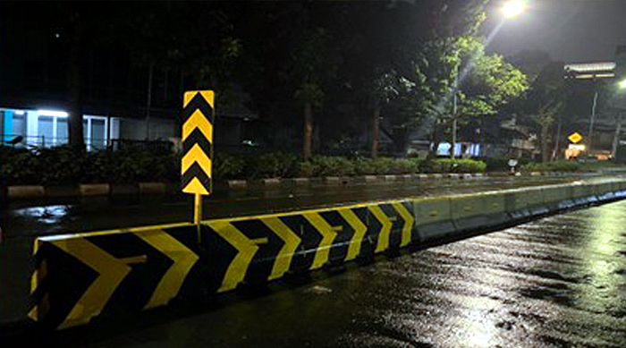 Rambu berwarna kuning-hitam yang dipasang bertujuan untuk menambah visibilitas, terutama pada malam hari atau saat cuaca buruk. Dengan demikian, pengendara dapat lebih mudah mengenali batas jalan dan menghindari potensi tabrakan terhadap pembatas jalan tersebut.