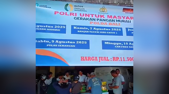 Denpasar – Dalam upaya menjaga stabilitas harga dan memastikan ketersediaan pangan di tengah masyarakat, Direktorat Reserse Kriminal Khusus (Ditreskrimsus) Polda Bali bekerja sama dengan Perusahaan Umum Badan Urusan Logistik (Perum BULOG) Kantor Wilayah (Kanwil) Bali menggelar Gerakan Pangan Murah di Banjar Monang Maning, Denpasar, Bali, Rabu (6/8).