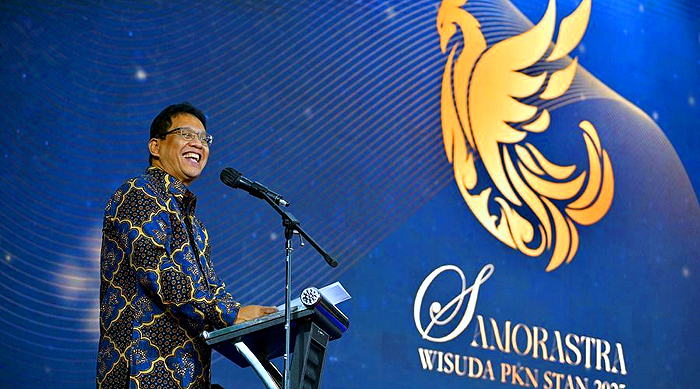 Acara wisuda PKN STAN tahun 2025 mengusung tema “Samorastra”, yang berasal dari tiga frasa Sansekerta: Sangharsat (lahir dari perjuangan), Samtosayukta (dengan rasa syukur), dan Rastrabhaktih (pengabdian kepada bangsa).