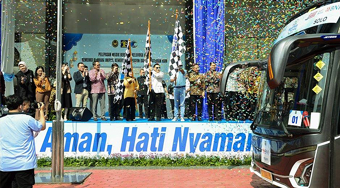 Sebanyak 22 unit bus disiapkan untuk mengantar para peserta menuju berbagai daerah tujuan di Pulau Jawa dan Sumatra. Rombongan pemudik secara resmi dilepas dari Lapangan Upacara Kemenkum di Jakarta, Kamis (12/03).