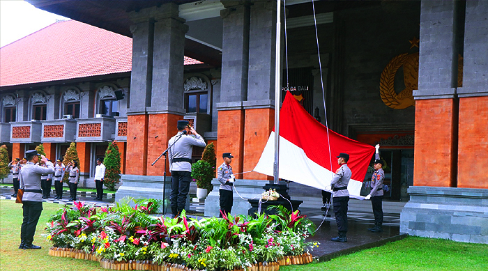 Upacara dimulai pukul 07.30 WITA dan diikuti seluruh personel dari masing-masing satuan kerja, termasuk para pejabat utama Polda Bali.