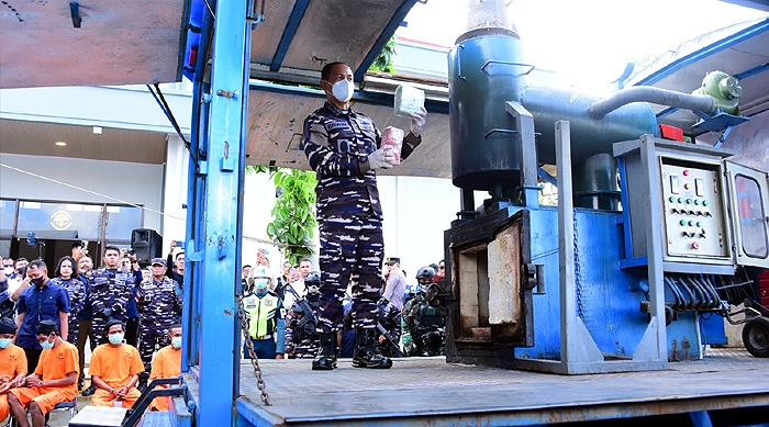 Kegiatan pemusnahan dipimpin langsung oleh Wakil Kepala Staf Angkatan Laut (Wakasal) Laksamana Madya TNI Erwin S Aldedharma mewakili Kepala Staf Angkatan Laut (Kasal) Laksamana TNI Muhammad Ali bersama dengan BNN RI, Kemenko Polkam, Kepolisian Polda Kepri, Kejaksaan Tinggi (Kejati) Kepri, BNN Provinsi Kepri, Kejaksaan Negeri (Kejari) Batam, Pengadilan Negeri (PN) Batam, serta BPOM Batam bertempat di Pangkalan Utama TNI AL (Lantamal) IV Batam, Kepri, Selasa (20/5).