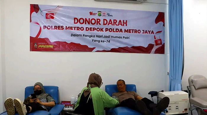 Depok – Dalam rangka memperingati Hari Ulang Tahun ke 74 Hubungan Masyarakat Kepolisian Republik Indonesia (Humas Polri), Seksi Humas Polres Metro Depok menggelar kegiatan bakti sosial berupa donor darah.